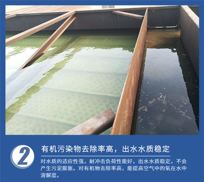污水經(jīng)沉淀池出來(lái)與其它生活污水匯總后進(jìn)入污水處理站,利用格柵池隔除較大的雜質(zhì)及漂浮物,污水自流至調(diào)節(jié)池,這樣既可以調(diào)節(jié)水量,又可以均衡水源。調(diào)節(jié)池采取地埋式,池頂可植上草皮。經(jīng)調(diào)節(jié)后的污水用排污泵提升至生化池。